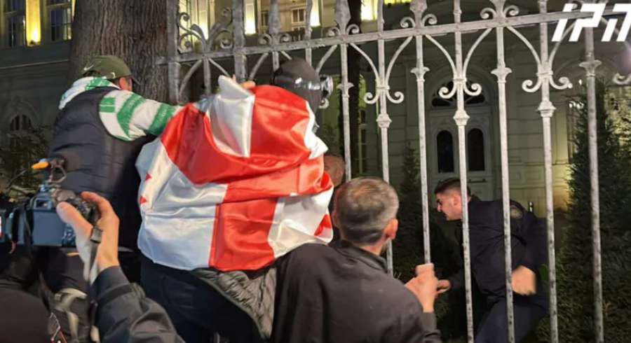აქციის მონაწილეებმა ათონელის საპრეზიდენტო სასახლის ჭიშკარი შეანგრიეს - ადგილზე დაპირისპირებაა.