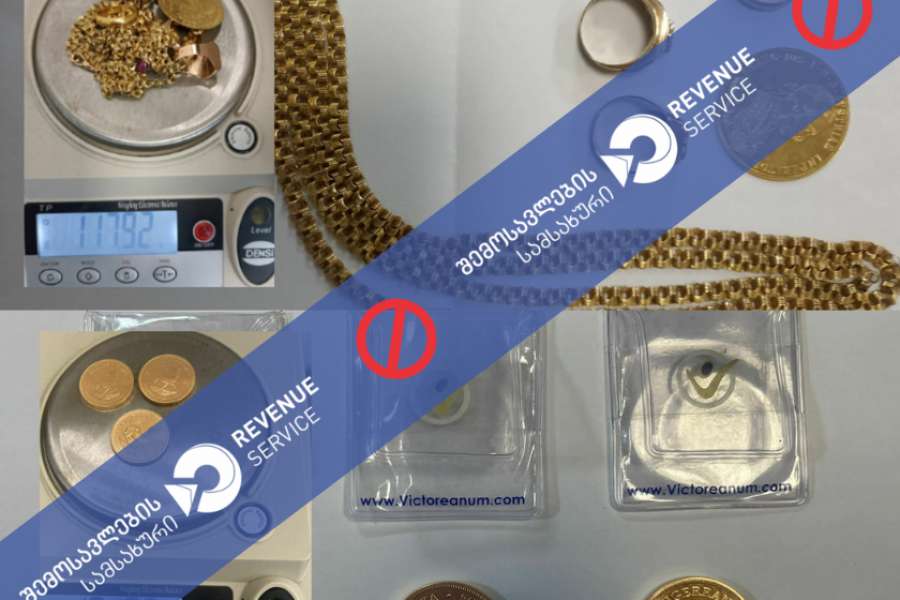 ფინანსთა სამინისტროს შემოსავლების სამსახურის მებაჟე ოფიცრებმა, ეჭვის საფუძველზე, უცხო ქვეყნის მოქალაქეების, როგორც ფიზიკური, ასევე კუთვნილი ბარგის დეტალური დათვალიერების შედეგად, არადეკლარირებული ოქროს (საერთო წონით 219.81 გრამი) ნაკეთობები აღმოაჩინეს.