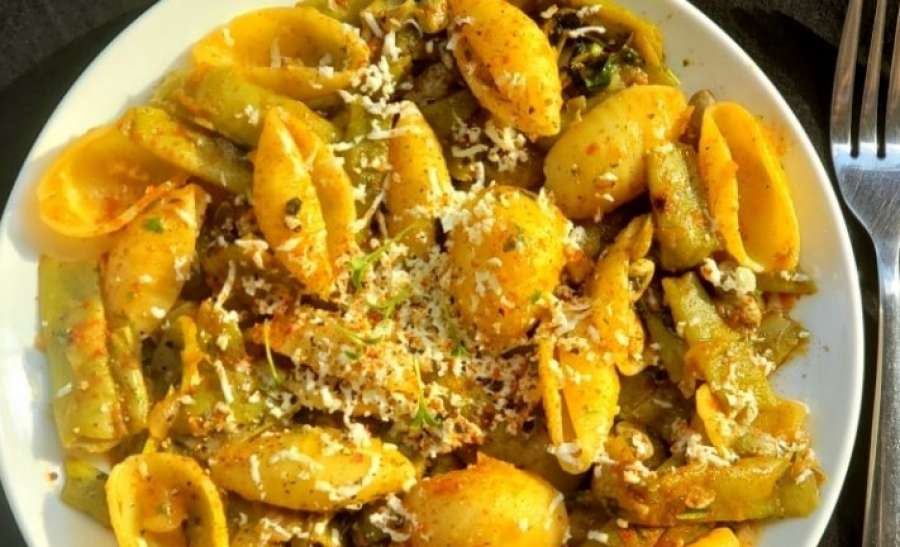 მწვანე ლობიო მაკარონით