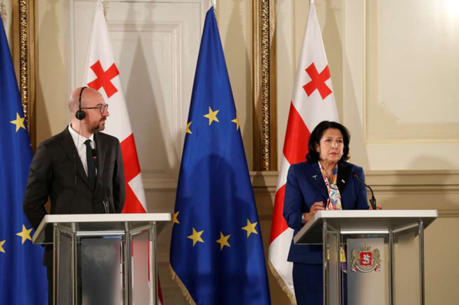 საქართველოს პრეზიდენტმა ორბელიანების სასახლეში ევროპული საბჭოს პრეზიდენტთან პირისპირ შეხვედრა გამართა, რის შემდეგაც სალომე ზურაბიშვილმა და შარლ მიშელმა ერთობლივი განცხადებები გააკეთეს.